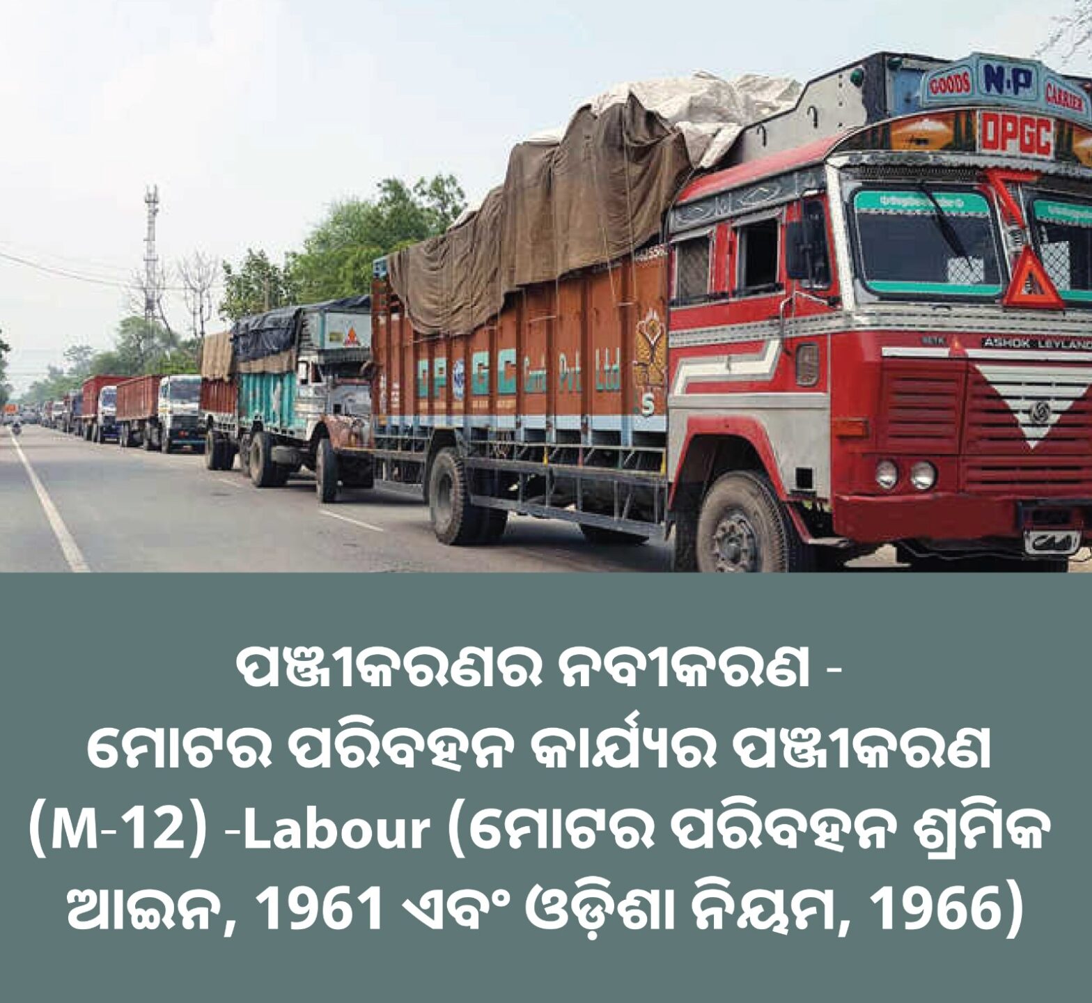 ମୋଟର୍ ପରିବହନ ଶିଳ୍ପରେ ନିୟୋଜିତ ଶ୍ରମିକମାନଙ୍କ କଲ୍ୟାଣ ତଥା ଅଧିକାରର ସୁନିଶ୍ଚିତତା ପାଇଁ ୧୯୬୧ ର ମୋଟର୍ ପରିବହନ ଶ୍ରମିକ ଆଇନ ପ୍ରଣୟନ କରାଯାଇଥିଲା – ସାମଗ୍ରୀ ଏବଂ ଯାତ୍ରୀ ପରିବହନରେ ଏହାର ପ୍ରମୁଖ ଭୂମିକା ହେତୁ ଅର୍ଥନୀତି ପାଇଁ ଏକ ଗୁରୁତ୍ୱପୂର୍ଣ୍ଣ କ୍ଷେତ୍ର ଅଟେ। ଏହି ଅଧିନିୟମ ଅନୁଯାୟୀ ପଞ୍ଜୀକରଣ କେବଳ ଏକ ଆଇନଗତ ଆବଶ୍ୟକତା ନୁହେଁ ବରଂ ମୋଟର୍ ପରିବହନ କାର୍ଯ୍ୟଗୁଡିକର କାର୍ଯ୍ୟକୁ ଚିହ୍ନିବା ଏବଂ ଆନୁଷ୍ଠାନିକ କରିବାରେ ଏକ ଗୁରୁତ୍ୱପୂର୍ଣ୍ଣ ପଦକ୍ଷେପ | ଏହି ପଞ୍ଜୀକରଣ ବ୍ୟବସ୍ଥିତ ନିୟନ୍ତ୍ରଣରେ ସାହାଯ୍ୟ କରେ ଏବଂ ଅନେକ ଲାଭ ପ୍ରଦାନ କରେ ଯାହା ଉଭୟ ନିଯୁକ୍ତିଦାତା ଏବଂ କର୍ମଚାରୀଙ୍କ ପାଇଁ ବିସ୍ତାର ହୁଏ | କାର୍ଯ୍ୟର ପରିସ୍ଥିତି, ଘଣ୍ଟା, ମଜୁରୀ ଏବଂ ଅନ୍ୟାନ୍ୟ ରୋଜଗାରର ଆବଶ୍ୟକତା ଉପରେ ସ୍ପଷ୍ଟ ନିର୍ଦ୍ଦେଶାବଳୀ ସ୍ଥିର କରି କାର୍ଯ୍ୟ ପରିବେଶକୁ ସୁରକ୍ଷିତ, ନିରପେକ୍ଷ ଏବଂ ସହାୟକ ହେବା ପାଇଁ ଏହା ଏକ ଗୁରୁତ୍ୱପୂର୍ଣ୍ଣ ଭୂମିକା ଗ୍ରହଣ କରିଥାଏ |