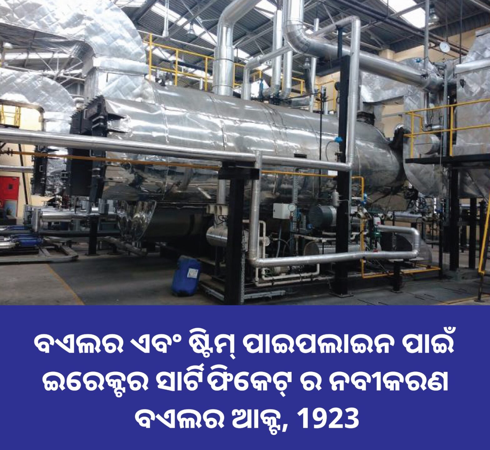ବଏଲର ଏବଂ ଷ୍ଟିମ୍ ପାଇପଲାଇନ ପାଇଁ ଇରେକ୍ଟର ସାର୍ଟିଫିକେଟ୍ ର ନବୀକରଣ – ବଏଲର ଆକ୍ଟ, 1923