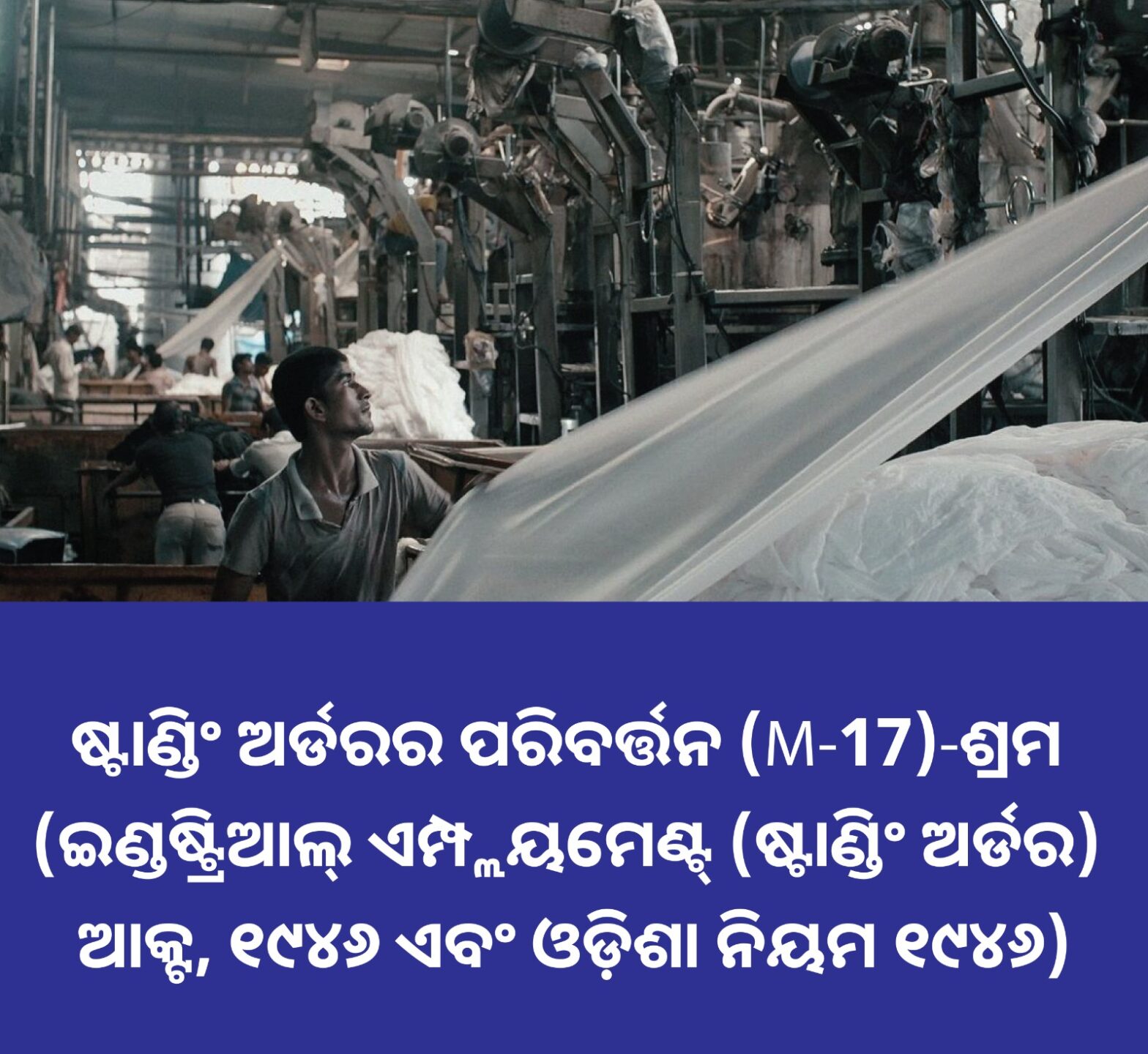 ଷ୍ଟାଣ୍ଡିଂ ଅର୍ଡର୍ର ପରିବର୍ତ୍ତନ (M-17)-ଲେବର୍ (ଇଣ୍ଡଷ୍ଟ୍ରିଆଲ୍ ଏମ୍ପ୍ଲୟମେଣ୍ଟ୍ (ଷ୍ଟାଣ୍ଡିଂ ଅର୍ଡର୍) ଆକ୍ଟ, ୧୯୪୬ ଏବଂ ଓଡ଼ିଶା ନିୟମ ୧୯୪୬)