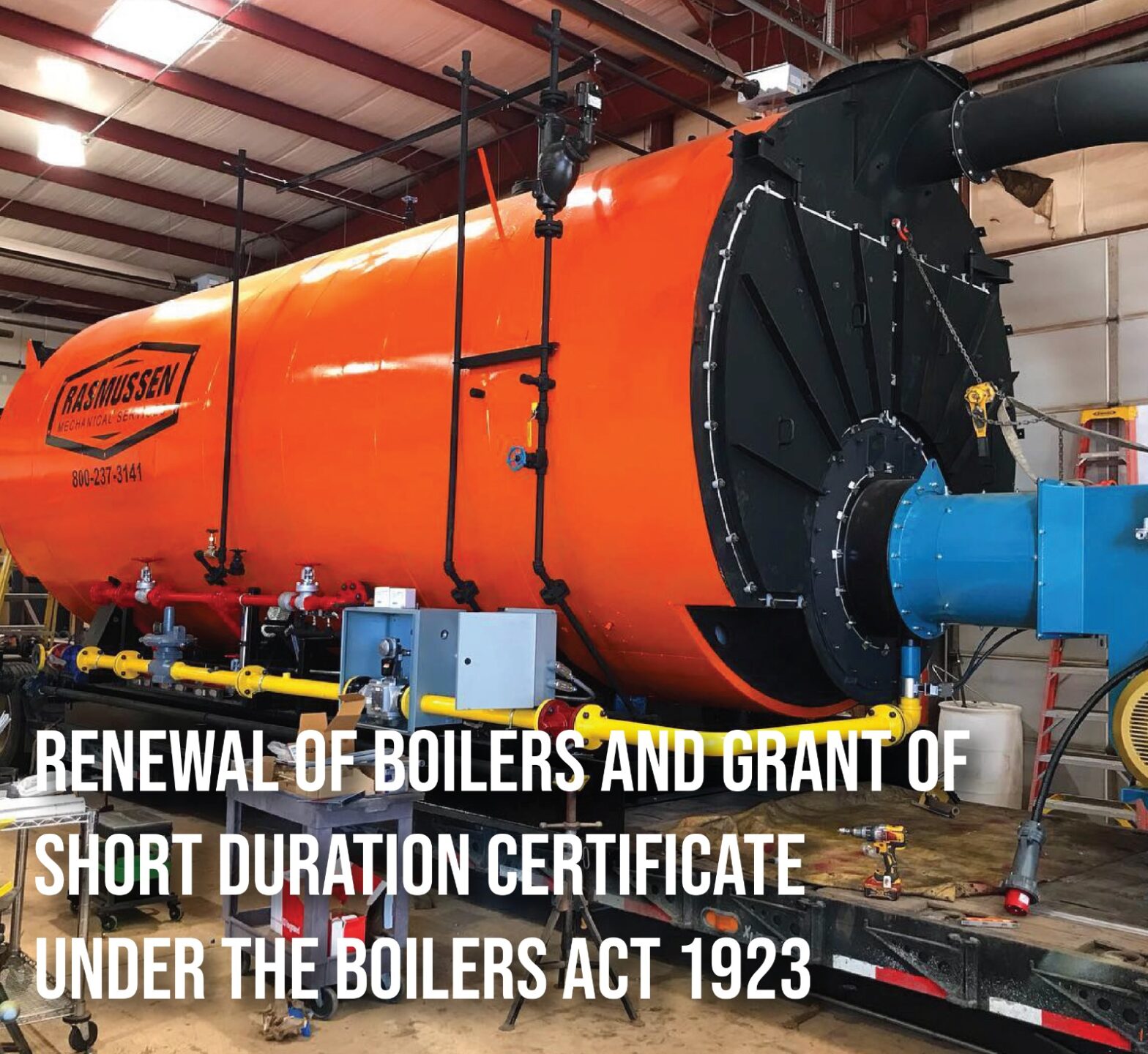 - Renewal of boilers and grant of short duration certificate under the Boilers Act 1923